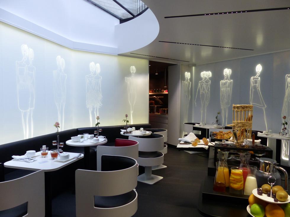 L’hôtel Félicien propose chaque matin de 7 à 11h un excellent et copieux petit déjeuner, servi sous forme de buffet, dans une salle là encore design et moderne vous transportant une nouvelle fois dans l’univers Mode d’Olivier Lapidus.