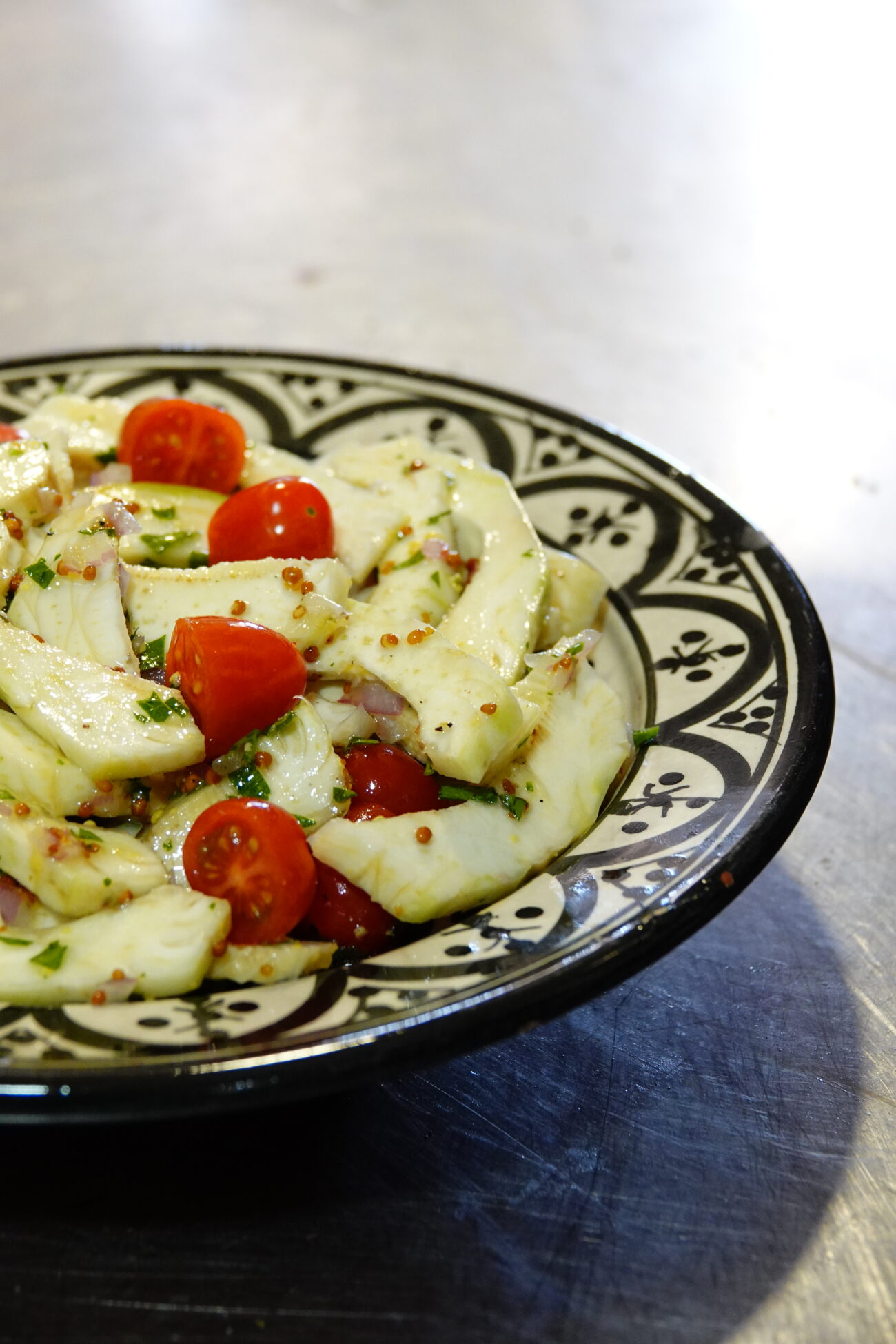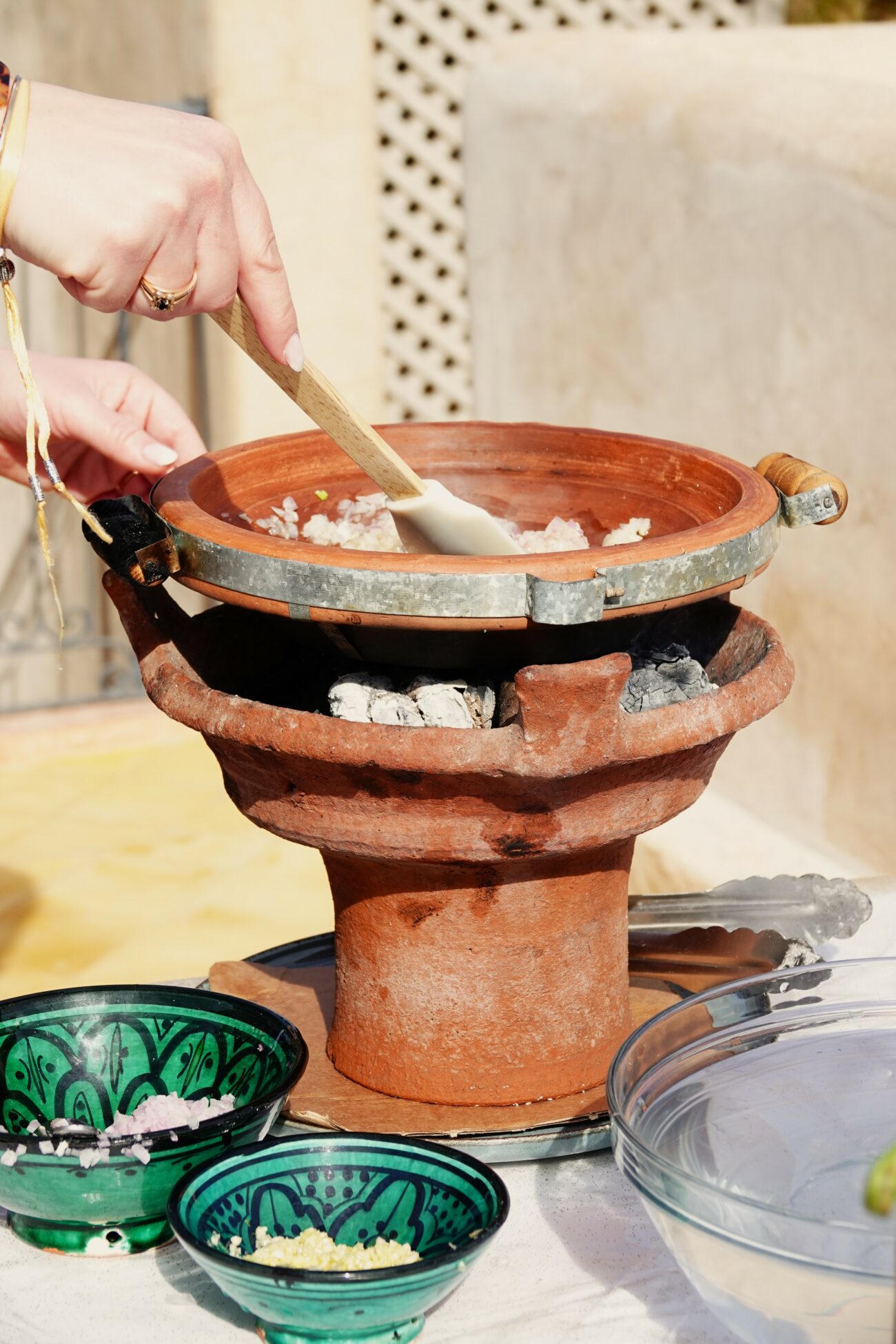 Vous pouvez également réserver un cours de cuisine marocaine avec le chef du Riad. Après un petit tour au marché local, vous aurez le plaisir de découvrir, de cuisiner (et de déguster !) de délicieux plats typiques de la cuisine marocaine :) Durant notre séjour, nous avons pu cuisiner une délicieuse tajine de poulet au citron et olives + deux salades marocaines (à artichauts et aux poivrons) ainsi qu’un dessert orange, glace et cannelle.