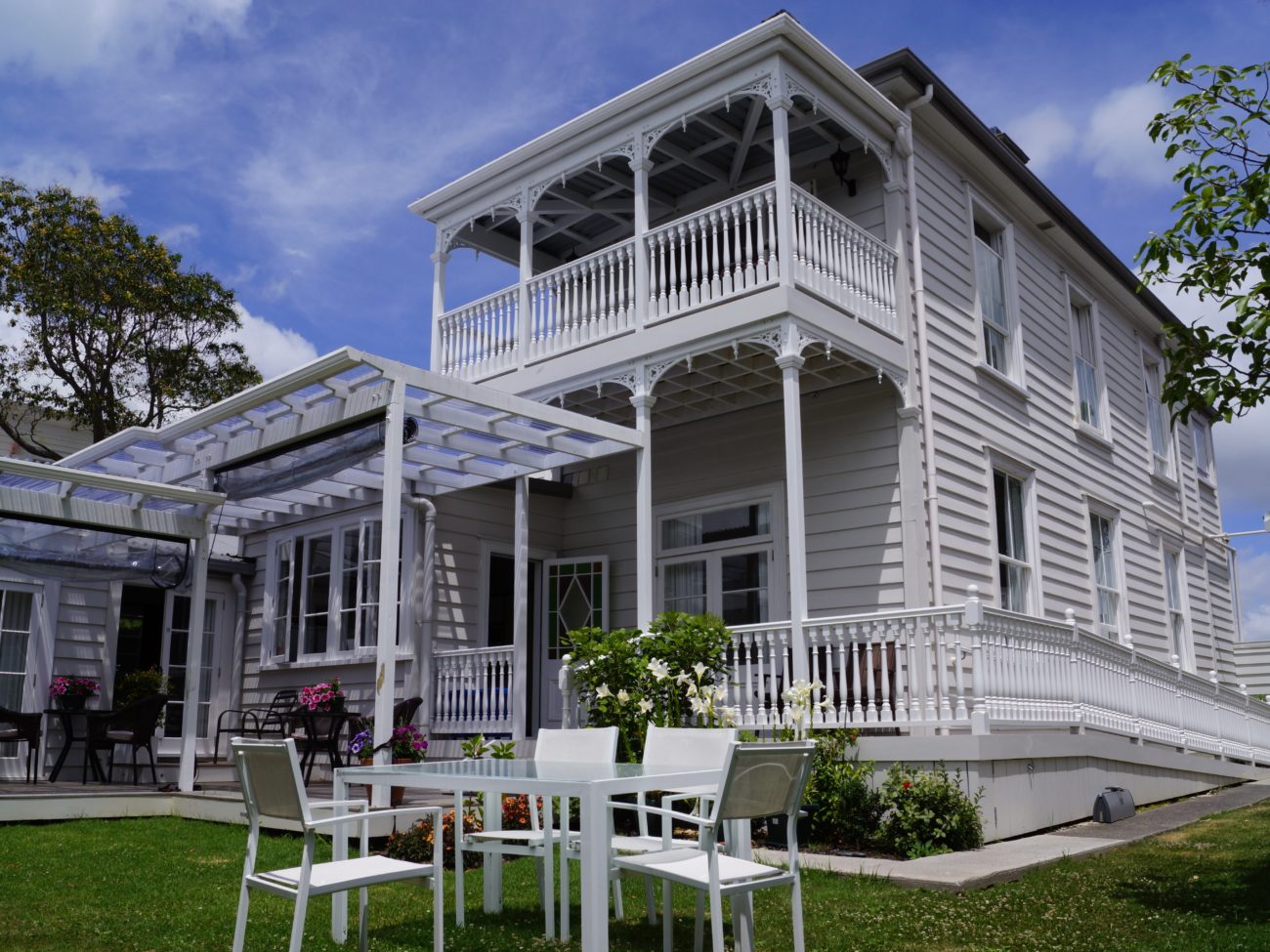 Aujourd’hui la maison compte 14 chambres, dont une suite (le penthouse), plusieurs chambres familiales, plusieurs Queens rooms et des chambres situées dans le jardin appelé « Garden rooms ». Plusieurs de ces chambres offrent une vue magnifique sur le centre d’Auckland, avec notamment une vue sur la Sky Tower… une vraie merveille à la nuit tombée !