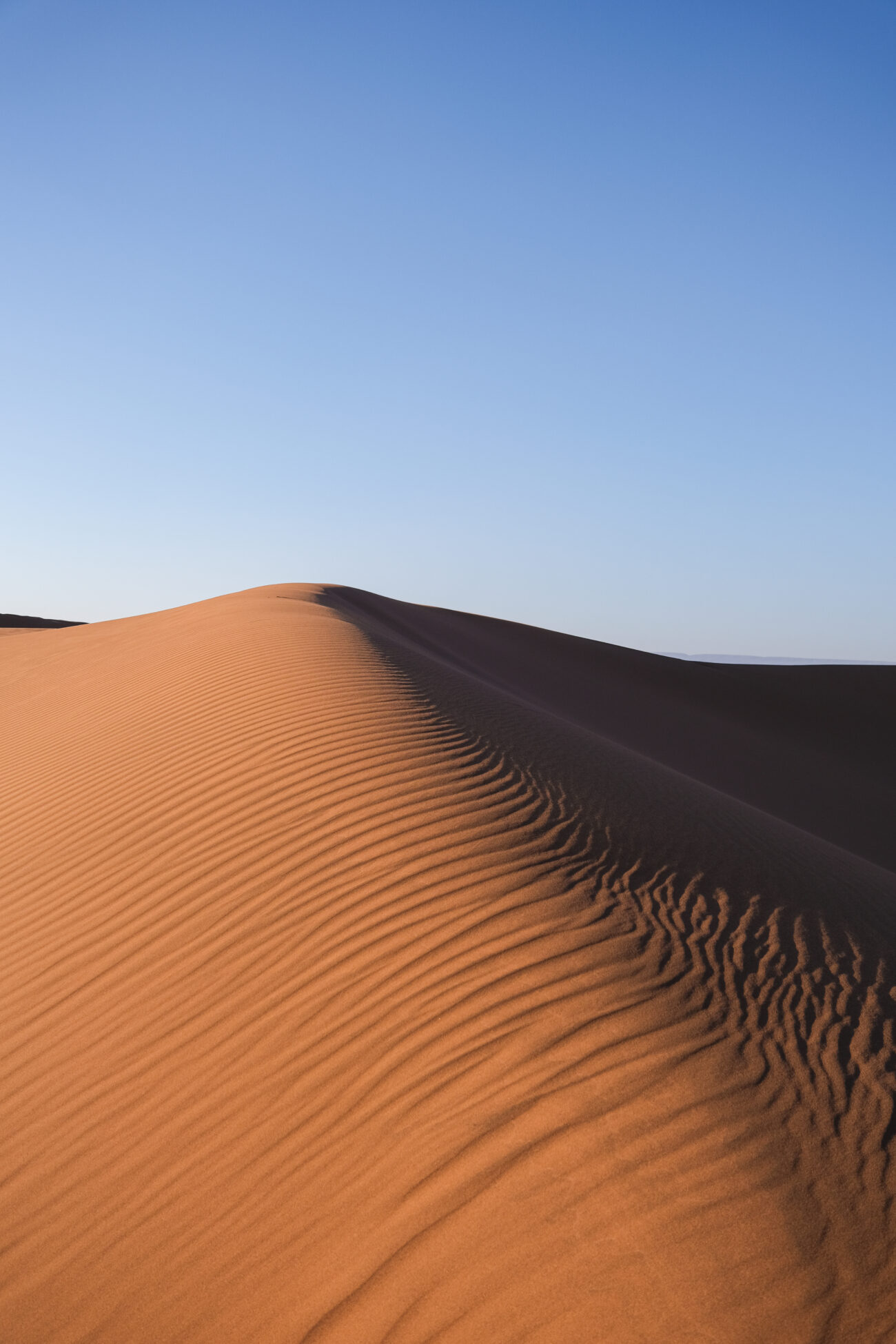 Dernier lever de soleil dans les dunes… et quel spectacle magique ! Je saisis l’instant et capture ces images avec mon appareil, mais surtout avec mes yeux. Le calme et ces dunes à perte de vue, c’était vraiment très apaisant.
