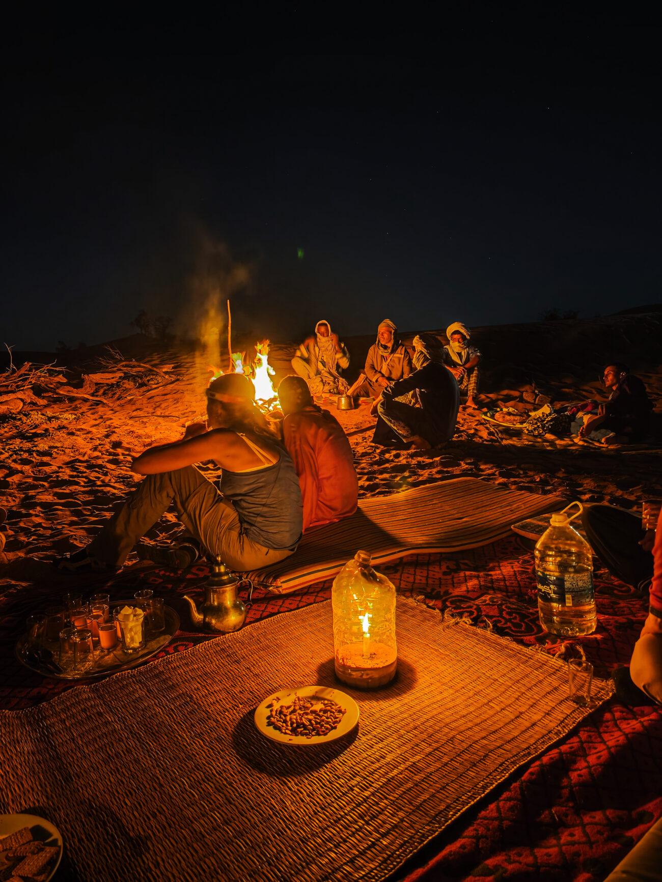 Au son des chants berbères, certains s’endorment à la belle étoile, d’autres sous la grande tente. La nuit est plus fraîche : les duvets chauds sont de rigueur.