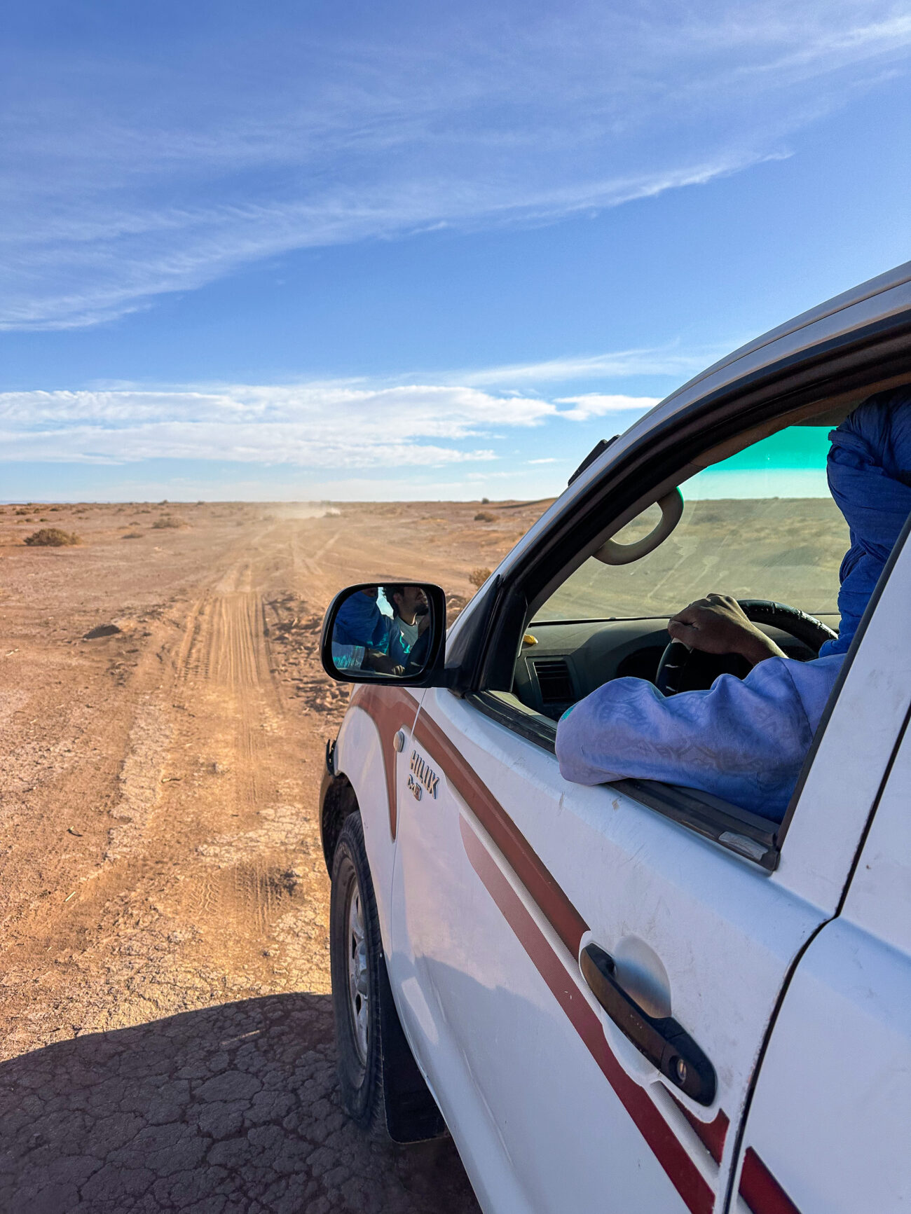 En amont, nous avons échangé plusieurs mails avec Karen, qui gère l’agence avec Saïd. Karen s’est montrée très disponible et a su répondre à toutes nos questions et interrogations. C’était une première pour nous, et même si nous en rêvions depuis longtemps, j’avais aussi quelques appréhensions : on s’éloigne de tout, et dans le désert… il n’y a rien !