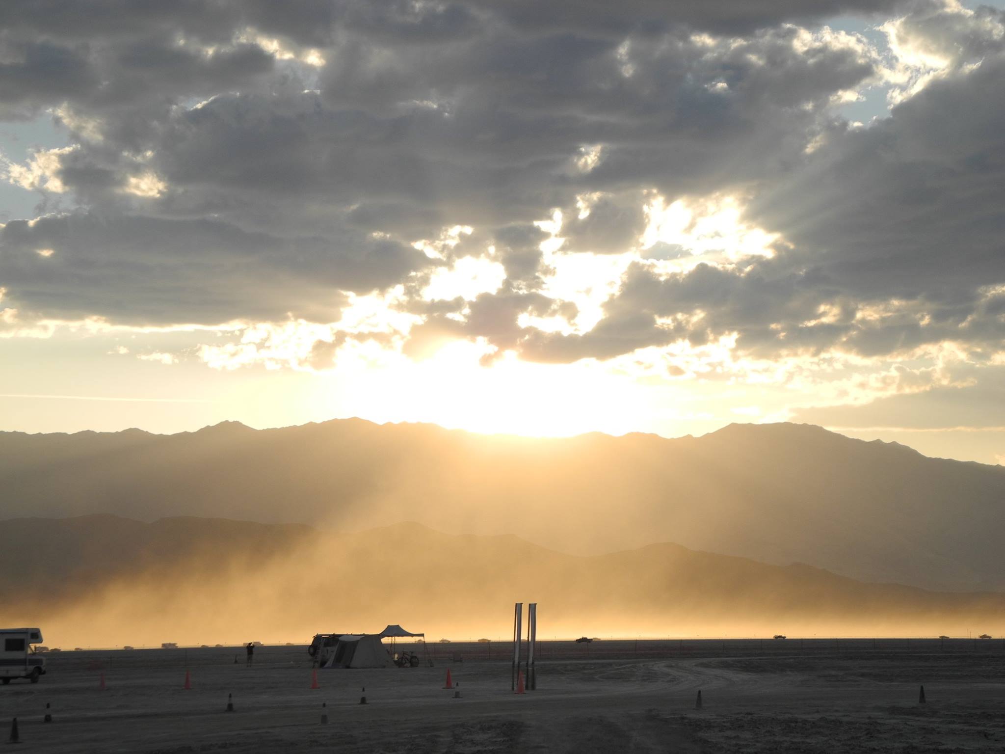 J’arrive le 12 aout à San Francisco, le 17 à Reno, travaille nuit et jour sur notre projet de camp jusqu’au 21, et je me fais déposer dans le patelin le plus proche pour entrer sur le site 3 jours avant l’ouverture du festival. Après avoir attendu mon ami qui n’est finalement jamais arrivé, et après avoir fait du stop, nous arrivons sur le site.